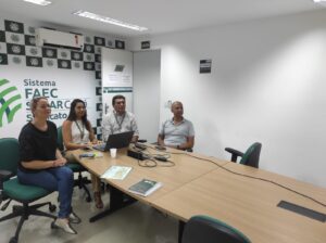 Participaram da reunião, o superintendente do Senar Ceará, Sérgio Oliveira, o coordenador da cadeia de ovinocaprinocultura e técnico do Senar Ceará, Eduardo Barroso, a coordenadora da ATeG Roberta Sá Gondim, e da coordenadora especial da ATeG, Thais Costa, instrutora do Sistema de Gestão da ATeG (SISATeG).