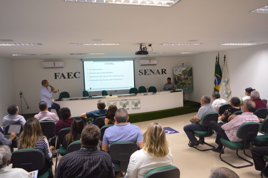 O Serviço Nacional de Aprendizagem Rural- SENAR, Administração Regional do Ceará, apresentou nesta terça-feira, 12, para os convidados do Pacto de Cooperação da Agropecuária Cearense-Agropacto, promovido pelo Sistema FAEC/ SENAR, o Programa de Assistência Técnica e Extensão Rural –AteG , que será o carro-chefe do SENAR este ano no Ceará. O SENAR trabalha há 25 anos com a capacitação do homem do campo e começou há cerca de 6 anos com um trabalho de Assistência Técnica em várias regiões do Brasil , ao ver a necessidade do produtor Rural muitas vezes evoluir não só na capacitação, mas também ter um acompanhamento contínuo gerencial, disse o Superintendente do SENAR-CE, Sérgio Oliveira da Silva. A ideia é expandir a atuação na assistência técnica e fazer o produtor enxergar que o acompanhamento é o diferencial, percebendo que a propriedade rural é uma empresa e que trabalhando mais profissionalmente poderá aumentar a sua produtividade e incentivar o empreendedorismo, disse.
