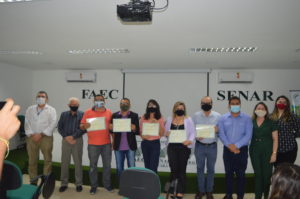 No segundo momento da reunião, a Coordenadora do Polo da Faculdade CNA no Ceará, Ana Kelly Claudio fez a apresentação dos cursos de Agronegócio ofertados pela CNA , na modalidade à distância , ocasião em que fez a entrega dos certificados e uma placa comemorativa aos primeiros alunos que concluíram recentemente os cursos. No Ceará, existe um Polo da Faculdade CNA desde 2018, em Fortaleza, ofertando quatro tipos de cursos superiores na modalidade de ensino à distância: Gestão do Agronegócio , Tecnologia em Gestão Ambiental, Tecnologia em Gestão de Recursos Humanos e Tecnologia em Processamento Gerenciais. A primeira turma, com oito alunos concluiu sua formação em 2020. A partir do próximo ano, começa a funcionar mais dois Polos, um em Ubajara e outro, na cidade de Quixadá. Kelly Claudio anunciou ainda que a CNA já aprovou a metodologia do Curso de Pós-Gradução no Agronegócio iniciado em Brasília e que deverá migrar para os demais polos no próximo ano.