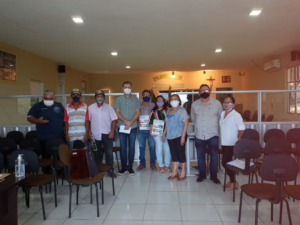 SINRURAL de Aracoiaba, 20/08, com renovação da diretoria. Assume a presidência a produtor rural, Jonas Campelo Nogueira, com posse marcada 14/09. Presentes, o Vice-Presidente de Administração e Finanças, Carlos Bezerra Filho, Nilza Luna do Departamento Sindical, e como convidada Eleneide Torres Brilhante. O atual Presidente, Mateus Nunes Diógenes, expressou suas palavras de confiança e sucesso na nova gestão.