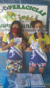 No final das aulas remotas para iniciar às férias de julho , os adolescentes da turma do 9° ano da Escola Municipal Francisco das Chagas Ferreira, localizada no município de Itaiçaba, integrante do Programa AGRINHO do SENAR, com a organização da professora, Ana Paula Nascimento, desenvolveram uma ação preventiva no combate ao Covid -19 com o tema: “Projeto COOPERACICLAR : REAPROVEITAR PARA TRANSFORMAR . O projeto foi realizado com a participação de alguns alunos da Escola que distribuiam e receberem um kit preventivo contendo um frasco de sabão líquido, um folheto informativo com informações sobre os cuidados com a higienização das mãos , como lavar com água e sabão . Na oportunidade foi feita também a entrega de blusas a turma do 9o ano com a logomarca do Programa AGRINHO e distribuído nas residências aos alunos com difícil acesso à escola pela professora Ana Paula.