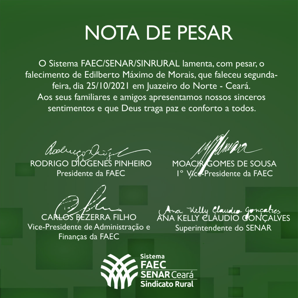 Na manhã desta quarta-feira, dia 10/02, os dirigentes e colaboradores do Sistema FAEC/SENAR, realizaram uma oração pelo restabelecimento e saúde do Presidente da FAEC, […]