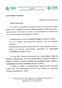 A FAEC também divulgou o assunto numa reunião do AGROPACTO, e na imprensa, mostrando os prejuízos que a suspensão  poderia causar, principalmente aos produtores de banana. Abaixo, os documentos encaminhados ao Governo e à Assembleia Legislativa, sem  que nenhuma medida  tenha sido tomada nesse sentido.