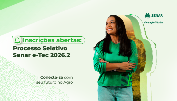 Processo Seletivo da Rede e-Tec 2026.2 As inscrições já estão abertas!Faça o Processo Seletivo Senar e-Tec 2026.2 Inscreva-se agora