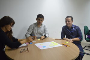 A didática da oficina no formato design thionking (pensar o modelo), através do facilitador Rogério Moraes do SEBRAE, economista, que utiliza metodologia com foco no cliente. No caso do SENAR, o objetivo é identificar as necessidades, os anseios e a partir daí fazer a organização do planejamento, de fora pra dentro levando o participante a enxergar qual o melhor serviço a ser prestado.
