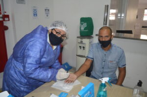 O Sistema FAEC/SENAR realizou nesta quinta-feira, 25, mais uma testagem contra a COVID-19, de seus colaboradores, através da Farmácia Santa Branca. Esta é a 5ª testagem realizada com a finalidade de prevenir a transmissão do vírus e tomar as medidas necessárias. A testagem foi, mais uma vez, acompanhada pela Coordenação de Recursos Humanos do Sistema.